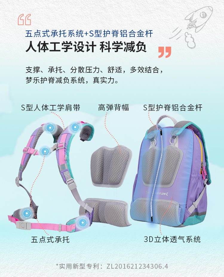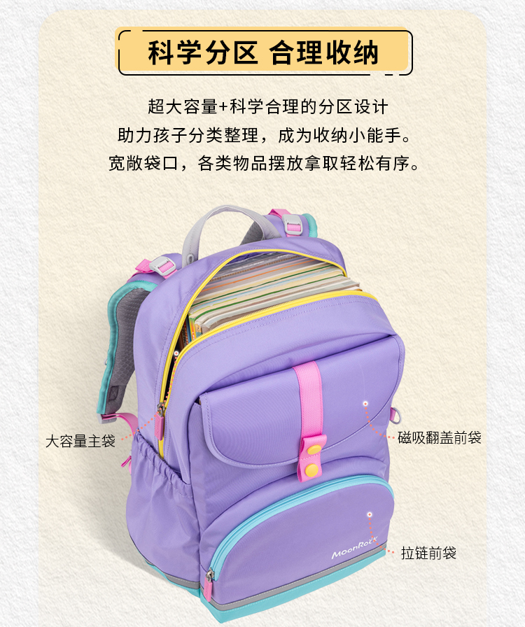 MoonRock梦乐护脊书包减负一二三六年级男女童小学生超轻便背包